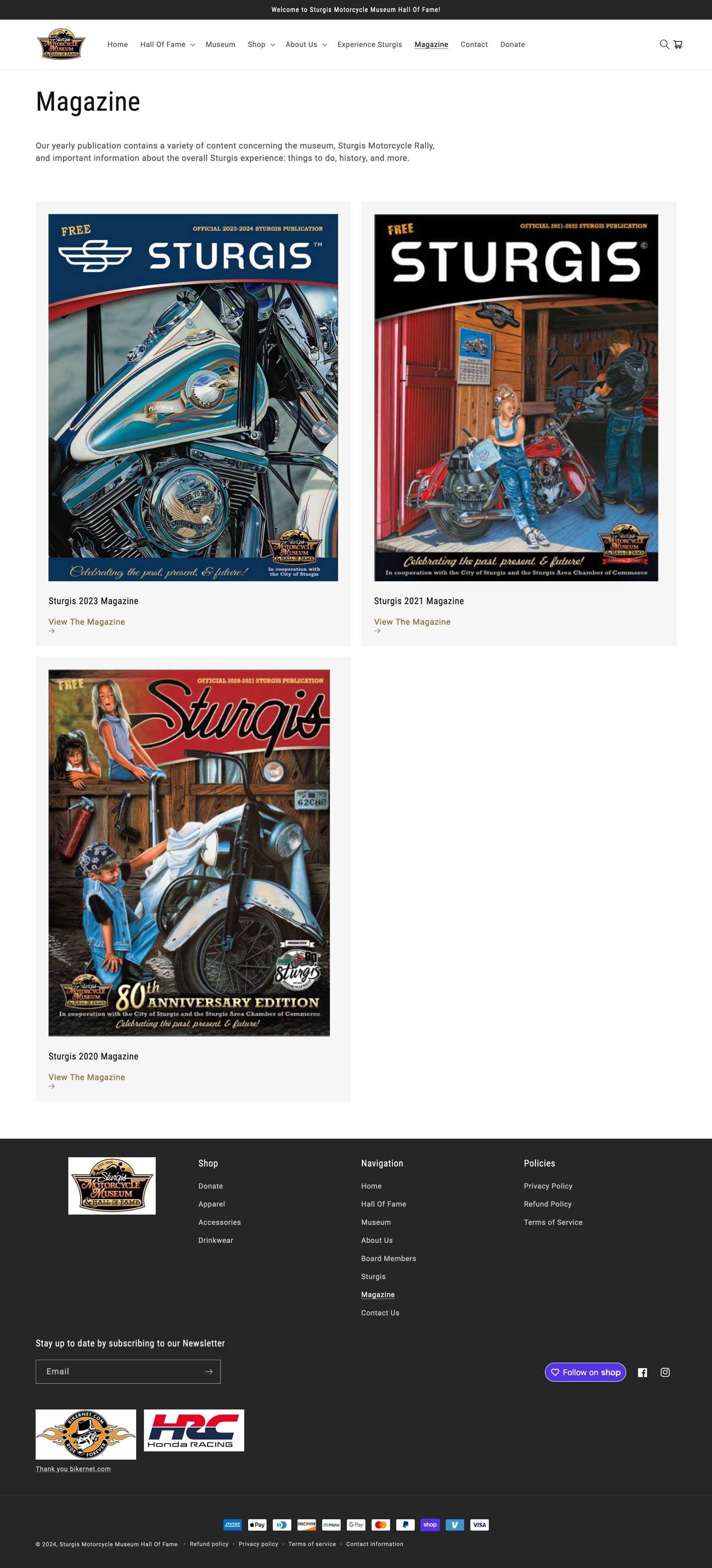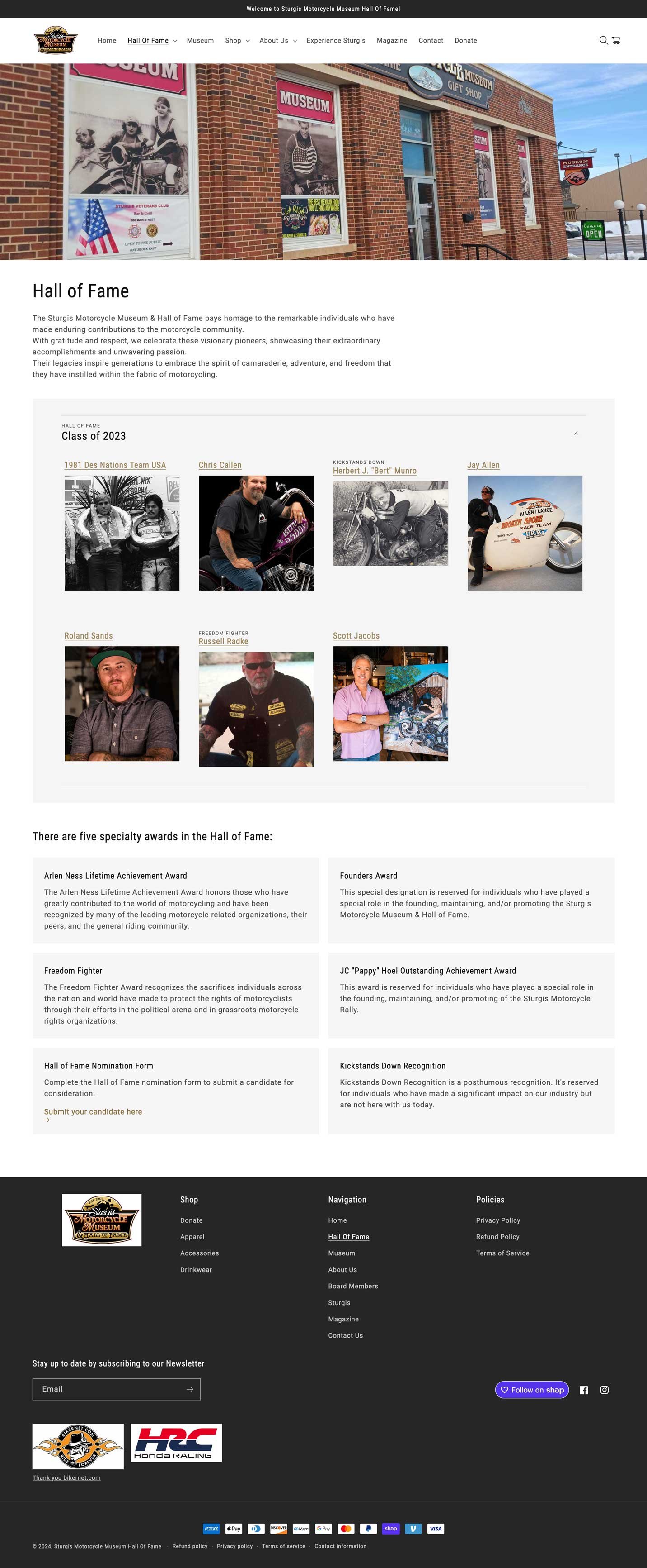 - Hall of Fame Display: Utilized Shopify’s blog feature to create a searchable, year-sorted display of Hall of Fame members.